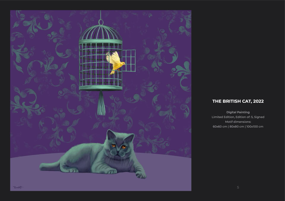 In doing so, he developed his own distinctive style, which draws on his strong computer-based work as a designer and yet also has roots in the art history of his Bulgarian homeland. In his case, these are very direct and personal, since Tonkoff comes from the family of the eminent cartoonist Alexander Dobrinov.