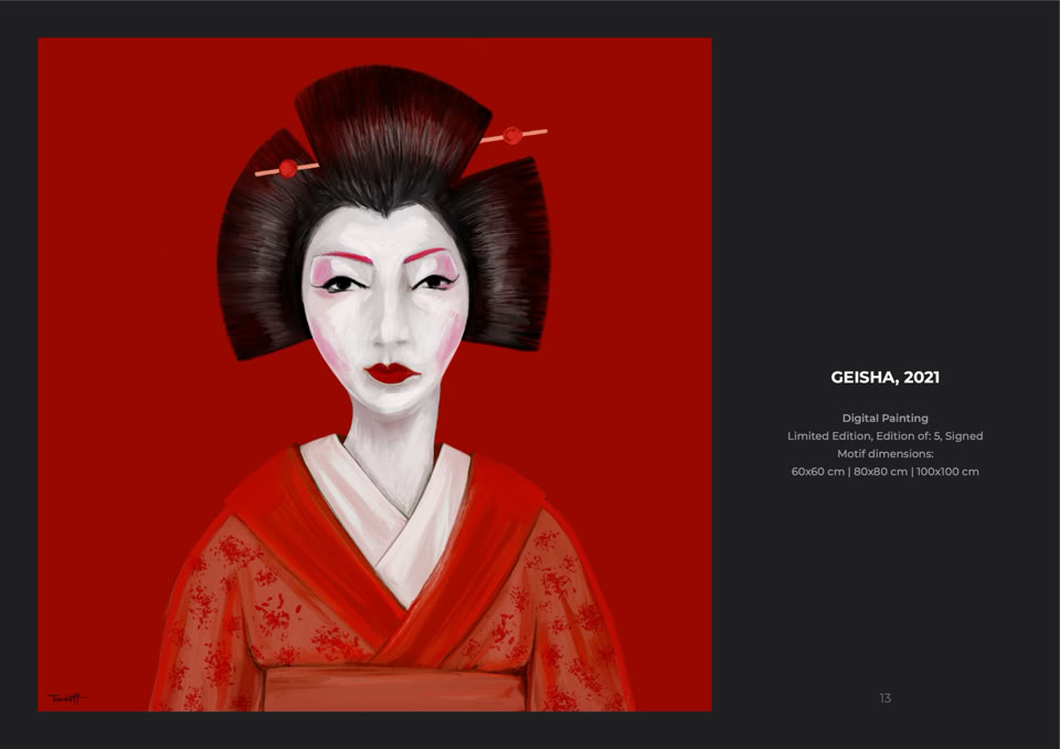 In his work created with the iPad, Tonkoff classically redefines digital art. Furthermore, the dividing line between digital and classical art is removed in terms of form and content.